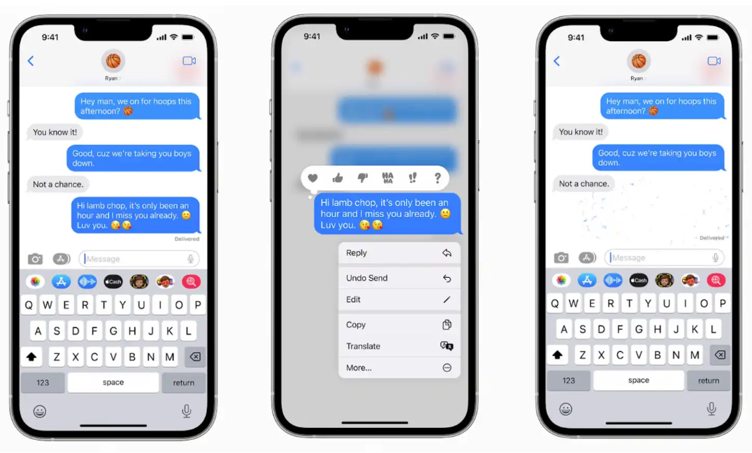 막 전송한 메세지를 편집이 가능하게 되었으며, 아예 전송 취소가 가능해졌습니다. 이는 정말 필요했었던 기능이 아닌가 생각이 되는데요, 수신인을 잘못 선택하여 메세지를 보내거나, 오타가 있을 경우에 정말 유용한 기능이 될것 같습니다. 또한 바로 답장하기 싫은 문자는 '읽지 않음' 표시로 해둘 수 있습니다.