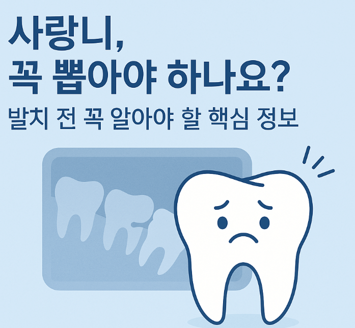사랑니는 단순히 치아 하나의 문제가 아니라, 전체 구강 건강과 일상생활에도 큰 영향을 줄 수 있는 중요한 이슈입니다. 정확한 정보와 사전 준비가 있다면, 발치도 그리 두려운 일이 아닙니다.