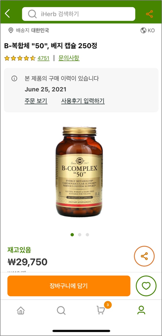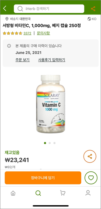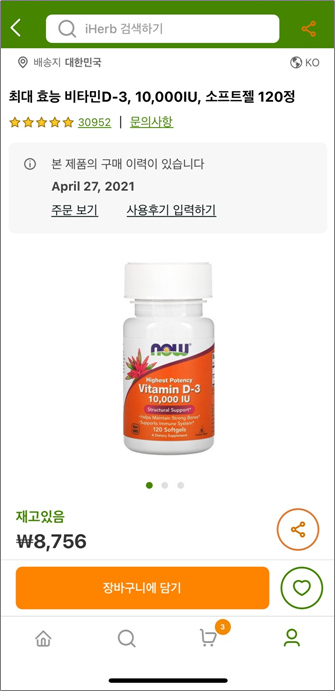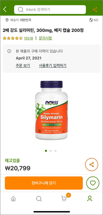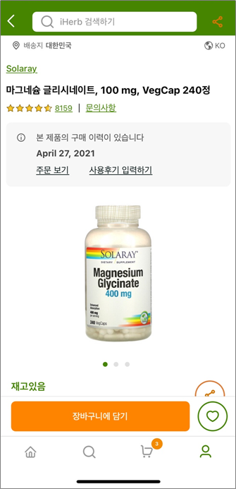 구매하고자 하는 영양제를 선택하여 장바구니에 담는다.