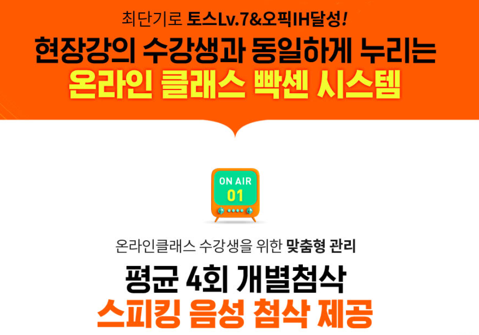 요즘, 많은 영어 학원에서는 언택트 시대를 맞아, 영어 온라인 강의에 집중을 하는 것 같다. 재택근무 시, 또는 회사 출근 시에도 출퇴근 영어로 많은 사람들이 온라인 클래스를 선호하는 추세이다. 나도 직장인 영어 회화 향상을 위하여, 여러 학원의 컬리 큘럼을 살펴보았는데, 특히, 1,500만이 선택한 학원, 해커스 영어 학원의 온라인 강의는 장점이 꽤 많은 것 같았다. 특히, "온라인 클래스의 빡센 시스템"이라는 문구가 확 와닿았는데, 온라인 클래스이지만, 선생님이 직접 실시간으로 운영하는 오픈 카톡을 통해 바로 질의응답이 가능하며, 최신 기술 유형을 반영한 자료 제공 및 실전과 동일한 모의테스트를 제공하는 것 또한 강점이다. 온라인 수업이지만, 현장 강의처럼 정해진 시간에 1일 1강을 듣는다는 것은 해커스 영어 학원만이 할 수 있는 역설적인 마케팅인 것 같다. 온라인 수업의 장점이 시간과 장소에 구애 받지 않고 어디서나 들을 수 있다는 것인데, 시간에 구속을 해버린 것이다. 하지만, 다시 생각하면 이 또 한 해커스 영어 학원의 밀착관리의 일부라고 생각한다. 영어 공부는 하루라도 빨리 시작하여 꾸준히 하는 것이 좋다. 나도 해커스 영어와 함께 나의 직장인 영어 회화 실력 향상을 위하여, 꾸준히 노력 할 것이다. 자연스럽게 영어를 구사하는 그날까지!
