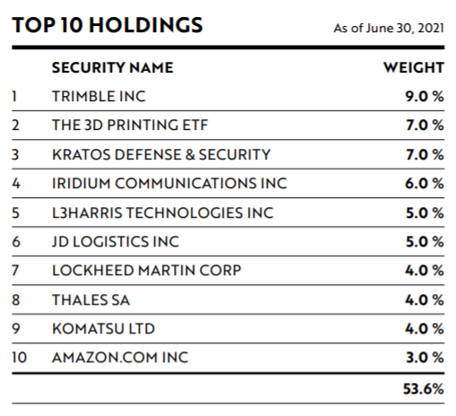 ARKX ETF 편입된 주요 10대 기업