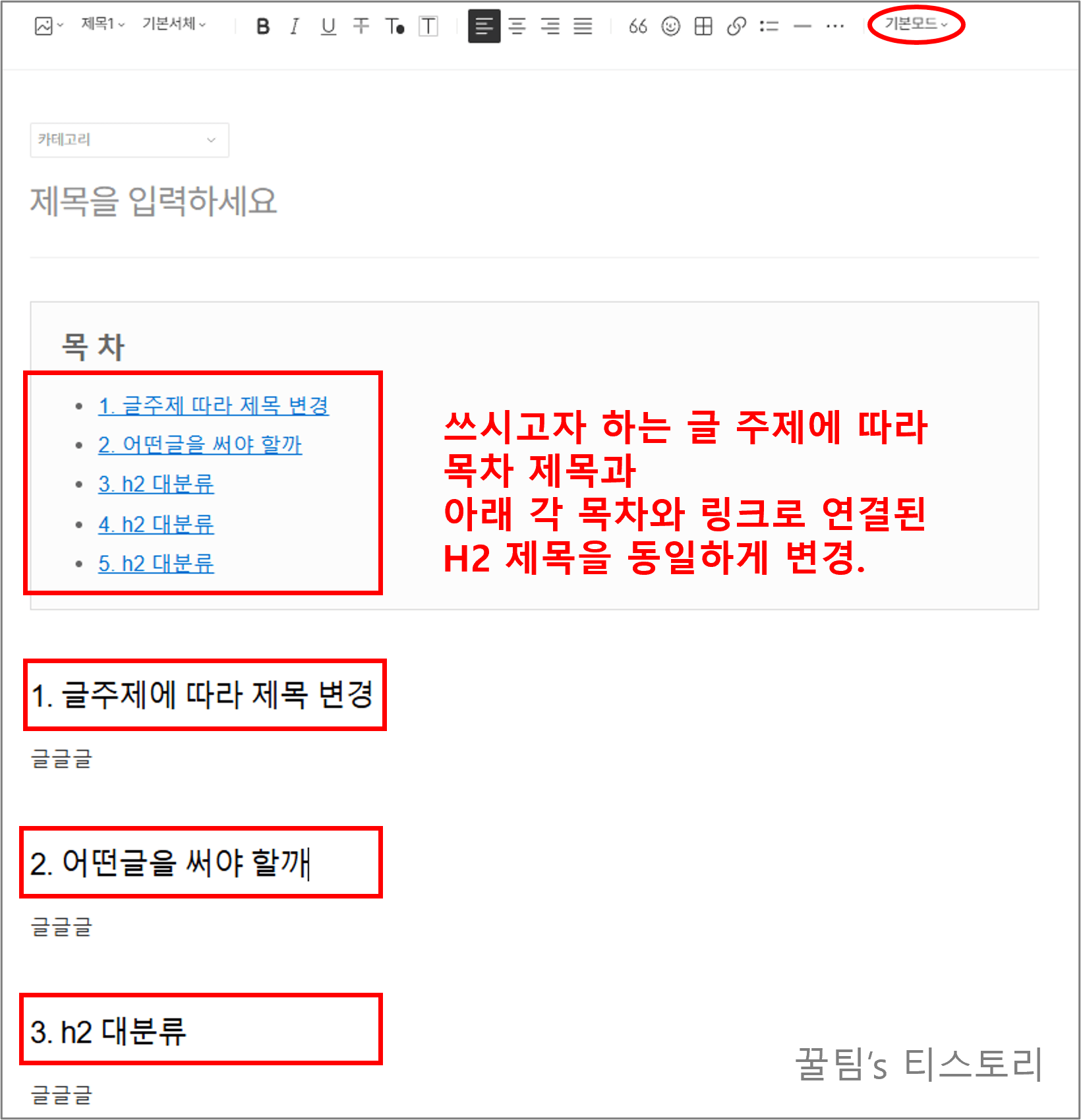 절차 5. 글 주제에 맞춰, 목차 제목 변경
