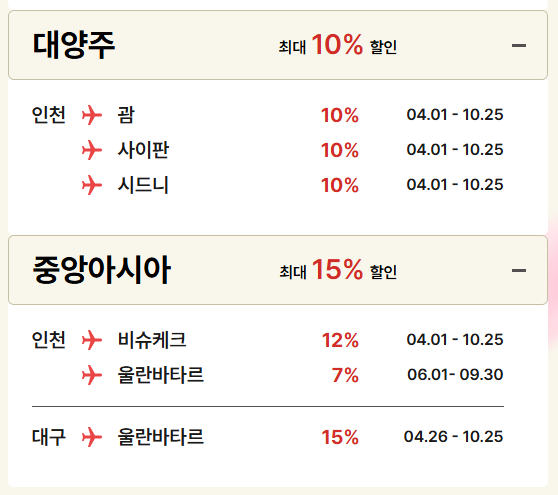 * 대양주 : 괌, 사이판, 시드니 등 최대 10% 할인