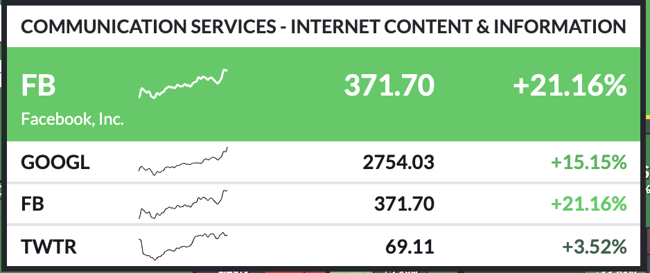Communication service 섹터에서는 21.16% 주가상승률을 보인 페이스북의 약진이 두드러지게 나타난다. 구글의 경우 15.15%의 상승률을 보여주고 있다. 페이스북의 주가 상승은 메타버스(Metaverse) 기술에 대한 기대심리를 반영한 것이 아닐까 생각이 된다. 페이스북은 향후 5년내 메타버스 분야로 사업전환을 선언하였는데, 이용자들이 가상공간 내에서 게임을 하거나 업무를 할 수 있는 온라인 세상 열겠다는 포부이다. 마크 저커버그는 23일(현지시간) 미국 뉴스 웹사이트인 더 버지와 인터뷰에서 향후 5년 안에 페이스북을 사회관계망 서비스(SNS)에서 메타버스(가상공간) 기업으로 탈바꿈시키겠다는 비전을 밝혔다. 빅 테크 기업들의 메타버스 기술 선점을 위한 쟁탈전이 가속화될 예정인데, 아마존도 서버, 저장장치, 네트워크를 구축하며 메타버스 투자에 열을 올리고 있으며,. 마이크로소프트도 홀로렌즈를 통한 메타버스 사업에 박차를 가하고 있다. 저커버그는 이날 인터뷰에서 “메타버스는 많은 기업과 산업 전반에 걸친 비전이며, 모바일 인터넷의 후계자”라고 말했다. 또한 메타버스는 명확한 형태의 존재감을 전달하는 기술로서 가상현실(VR), 증강현실(AR), PC, 모바일 기기, 게임 콘솔 등 모든 컴퓨팅 플랫폼에서 접속할 수 있는 플랫폼이라고 강조했다.