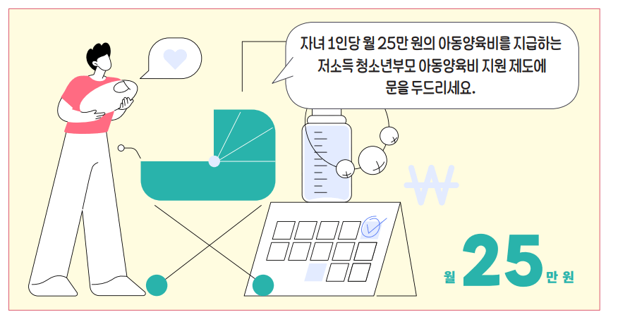 | 저소득 청소년 부모 아동양육비 지원 월 25만원 지원 |