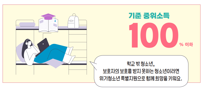 | 위기청소년 특별지원 생활지원,건강지원,학업지,자립지 등 |
